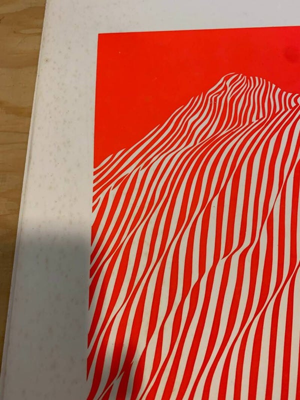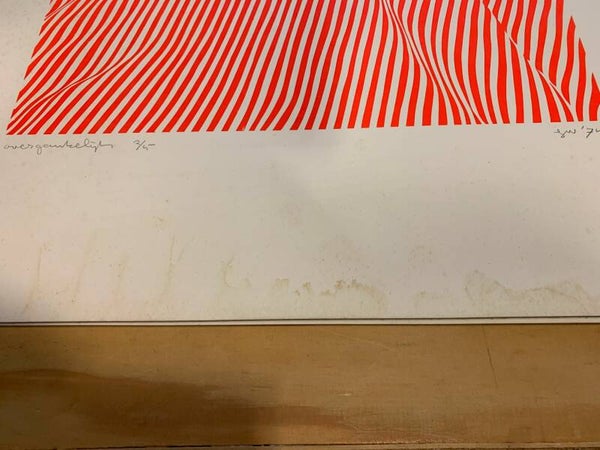 Note: verlijmd op hard karton, op het witte gedeelte meerdere vlekjes en onderin verkleuring daarom speciale prijs