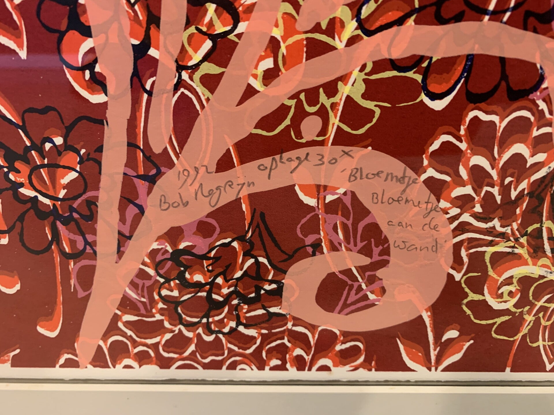 0356 - Bob Negrijn - Bloemetje bloemetje aan de wand - (90 * 120 incl. lijst)
