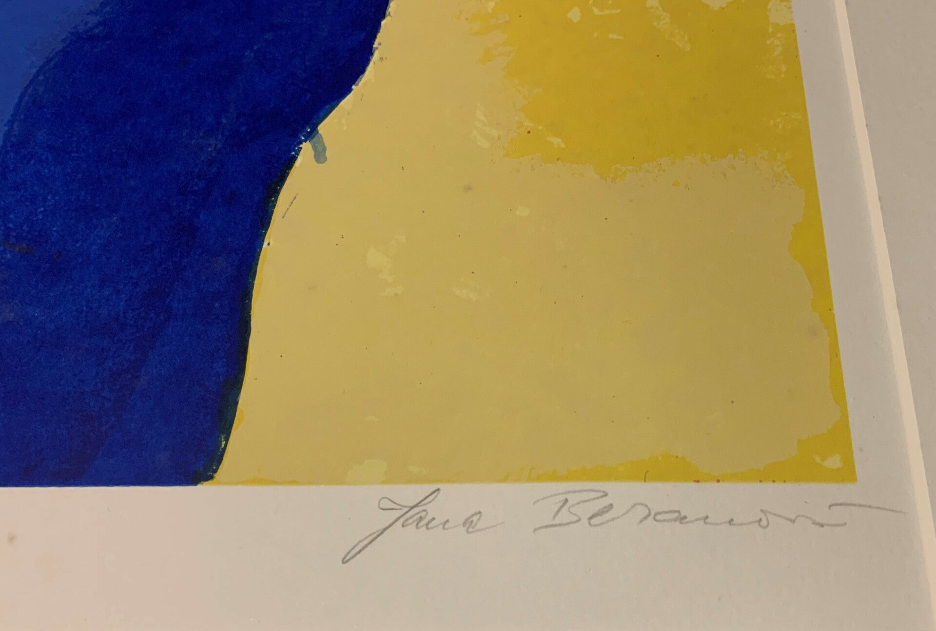 Note: paar hele licht vlekjes op witte gedeelte van werk bij de handtekening