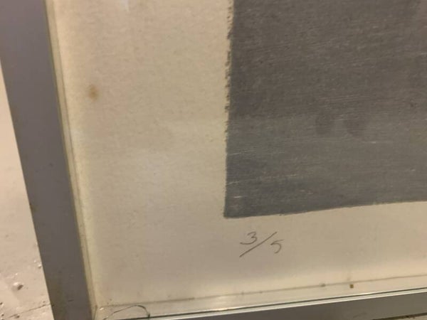 Note: meerdere vlekje op het werk, glas links onder miniscuul schueurje, vandaar speciale prijs