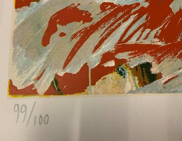 Note: vlekjes op passe-partout, niet op werk zelf. Minuscuul scheurtje in glas daarom speciale prijs
