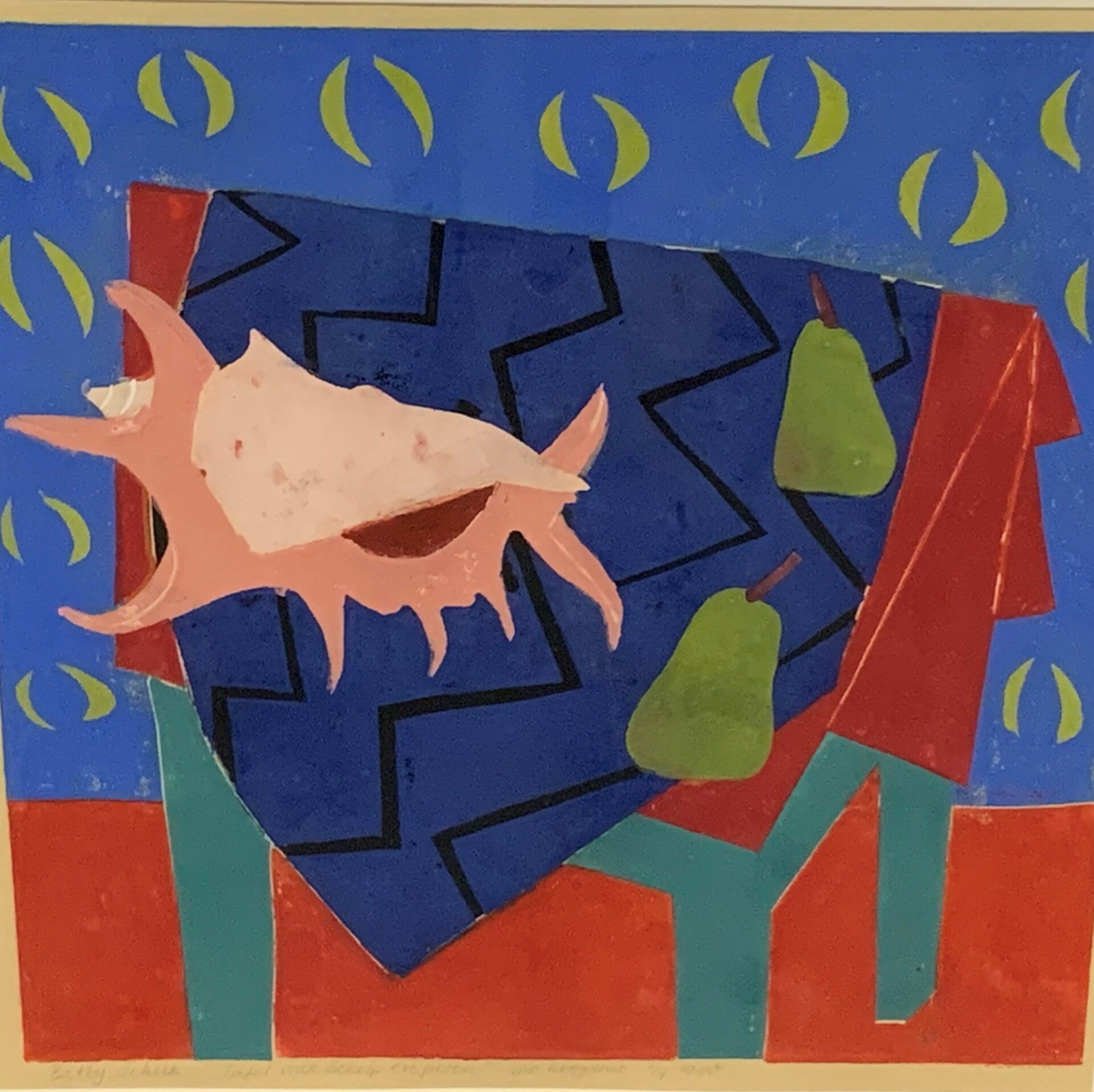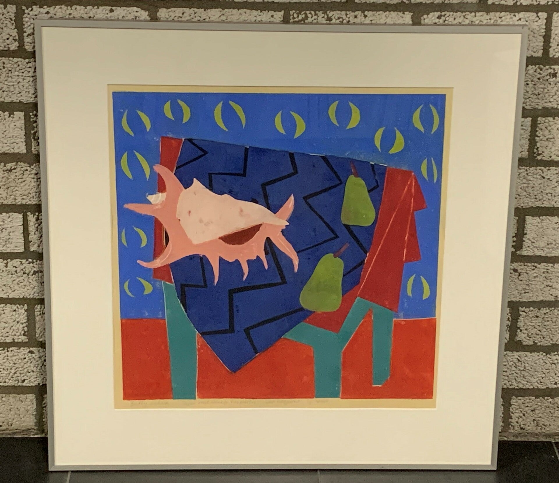 1242 - Betty Scheer - Tafel met schelp en peren (80 * 80 incl lijst)