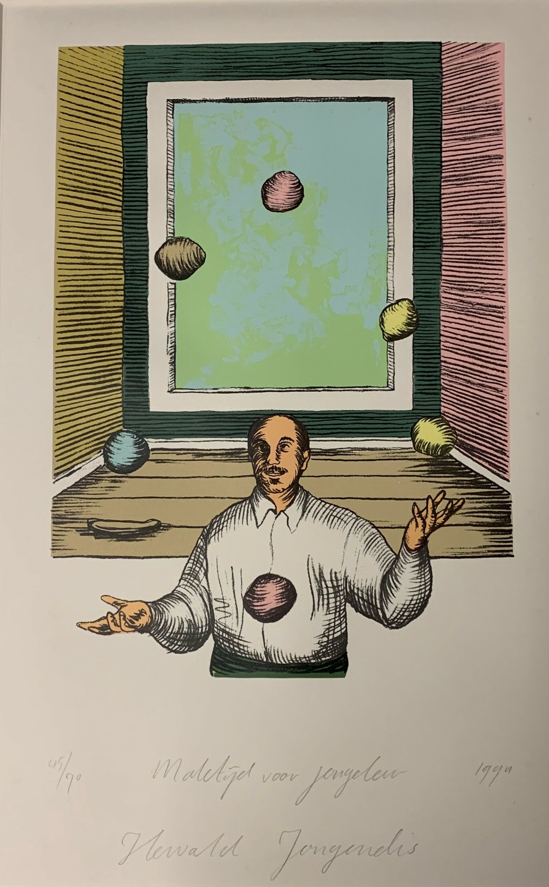 1412 - Hewald Jongenelis - Maletijd voor jongleur ( 50 * 70 incl. lijst)