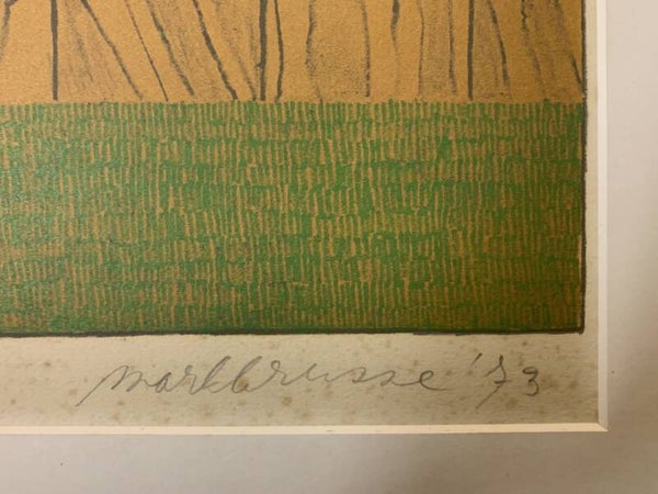 0403 - Mark Brusse - houten schutting ( 60 * 80 incl. lijst)